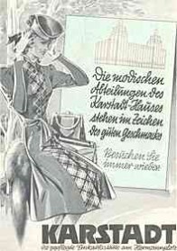 | |  | | | "-und für Ihre Einkäufe Karstadt immer wieder Karstadt - Das Haus in dem man gut kauft. - U-Bahnhof Herrmannplatz", Anzeige (1940)