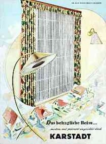 | |  | |  | | "Das behagliche Heim...modern und preiswert eingerichtet durch KARSTADT", Einrichtungsprospekt (wohl 1952) | | 50 Eigenheime - "Wüstenroter Ratgeber für alle, die bauen wollen" - Herausgegeben von der Bausparkasse Gemeinschaft der Freunde Wüstenrot