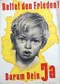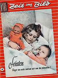 | Zeit im Bild - Titel: "Eltern, denkt an uns, stimmt mit JA!" - Themen z.B.: "Verbot der Volksbefragung isoliert Adenauer und seine Clique", "Wachsender Wohlstand - Erfolge friedlicher Aufbauarbeit", "Verarmendes Westdeutschland" | | Zeit im Bild - Themen z.B.: "Kampfmai 1951 für Frieden, Freiheit und Fortschritt", "Neue Verhältnisse - neues Bewusstsein - Neue Aufgaben", "Den Kriegstreibern die Faust! Den Freunden des Friedens die Hand!" | | "Zeit im Bild - Titel: "Freundschaft festigt den Frieden" - "Vierzehn Tage stand Berlin im Zeichen der III. Weltfestspiele der Jugend und Studenten für den Frieden"