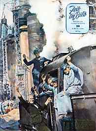 | | Zeit im Bild - Titel: "Leipzig die von den Amerikanern stark zerbombte Handelsmetropole, holt von Messe zu Messe tüchtig auf. Der Straßenbahner Siegfried (...) will es bis zum leitenden Verkehrsfachmann bringen. (...) ...welche Chancen sich strebsamen Jugendlichen in unserer Heimat bieten, beleuchten wir auf Seite 7." |