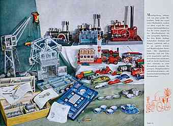 |  | |  | "Metallspielzeug erfreute sich von jeher großer Beliebtheit. (...) Für die reifere Jugend ist der Metallbaukasten ein sehr anregendes Spielzeug, das dem Kinde Anfänge technischen Denkens und Bauens vermittelt und es so an spätere Lebens- und Berufsaufgaben heranführt."
