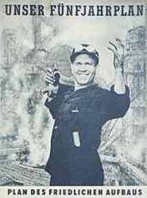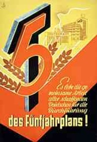 | "Es lebe die gemeinsame Arbeit aller schaffenden Deutschen für die Durchführung des Fünfjahrplans!", Plakatmotiv | | "Unser Fünfjahrplan - Plan des friedlichen Aufbaus", Heft | | "Unser Fünfjahrplan des friedlichen Aufbaus . Freund und Wegweiser aller Deutschen in eine glückliche Zukunft" |