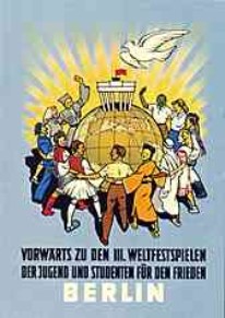 | "Vorwärts zu den III.Weltfestspielen der Jugend und Studenten für den Frieden Berlin"