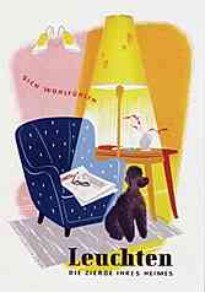 | |  | |  | | | "Schöner wohnen", Möbelprospekt | | Grosshandelskontor für Technik - "Behaglich muß Ihr Heim sein, wenn Sie darin erholsame Entspannung finden wollen. Dazu gehört Musik und wohltuendes Licht, sie schaffen die Harmonie für einen schönen Tagesausklang." |