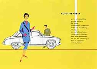 | | "Autoliebhaber prüfen sehr sorgfältig, ehe sie urteilen – "Sie" achtet zunächst stets auf die Form, Farbe und Ausstattung... "Er" studiert technische Einzelheiten, nutzbringende Vorzüge..."