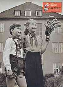 | |  | | | Die Frau von heute - Titel: "Thälmann-Pioniere sind die schaffende Generation von morgen. In unserem Land, dem die Sowjetarmee vor 11 Jahren die Fesseln der Unterdrückung nahm, und das heute den Sozialismus aufbaut, sehen sie zuversichtlich in die Zukunft."