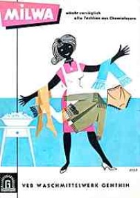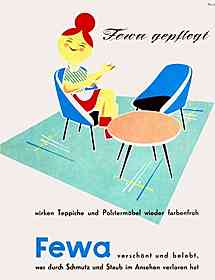 | |  | |  | "Fewa gepflegt wirken Teppiche und Polstermöbel wieder farbenfroh" - "Fewa verschönt und belebt, was durch Schmutz und Staub im Ansehen verloren hat" | | VEB Waschmittelwerk Genthin - "MILWA"