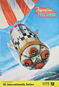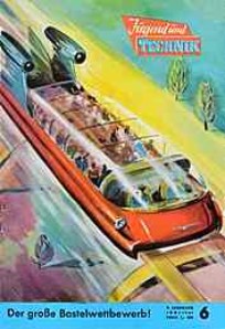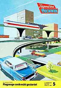 | Jugend und Technik - Titel: "Stadtbild von übermorgen" - Themen z.B.: "Wo bleibt das Spielzeug unserer Zeit?", "Wo früher Eisenkarren klirrten rollen heute Bänder", "Flugzeuge senkrecht gestartet", "Die Stadt von morgen"