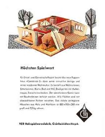 | |  | VEB Holzspielwarenfabrik Grünhainichen - "Höchsten Spielwert für Einzel- und Gemeischaftsspiel besitzt das Puppenhaus "Constanza" dank seiner sinnvollen Anlage und seiner modernen Wohnkultur."