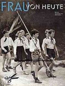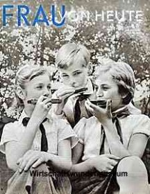 | | Frau von heute - Titel: "So fröhlich wandern jetzt während des IV. Pioniertreffens Tausende Jungen und Mädchen durch Erfurt und die vielen Orte unserer Republik, die das Kindertreffen mitfeiern."