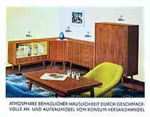 | |  | "Atmosphäre behaglicher Häuslichkeit durch geschmackvolle An- und Aufbaumöbel vom Konsum-Versandhandel"