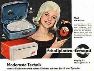 | | Versandhaus Leipzig - "Schallplatten-Versand" - "Musik auf Wunsch" - "Modernste Technik schenkt Vollkommenheit echten Erlebens schöner Musik und Sprache"