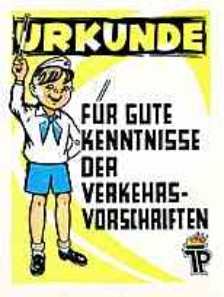 | |  | | | Urkunde für gute Kenntnisse der Verkehrsvorschriften | | Privatfoto (schätzungsweise um 1963)