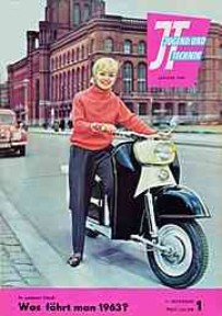 | JUGEND UND TECHNIK - Titel: "Die jüngste Neuschöpfung unserer Zweiradindustrie ist der Motorroller "Troll", der im VEB Industriewerke Ludwigsfelde mit Beginn dieses Jahres an die Stelle des "Berlin" rückt."