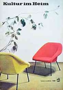 | |  | | | "Kultur im Heim", Zeitschrift - Themen z.B.: "Die Küche in Funktion und Praxis - Organisation ist die halbe Küchenarbeit", "Steingutgeschirr - preiswert und schön" | | "Kultur im Heim", Zeitschrift - Titelbild: "Neues aus Waldheim, dem Entwurfsbüro für Sitz- und Polstermöbel." | | |