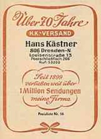| | | |  | Hans Kästner Versand, Dresden - Preisliste für "Hygieneartikel" - MEHR zum Thema "Sexualität in der DDR" HIER