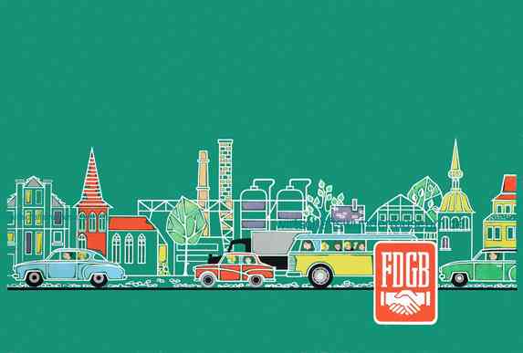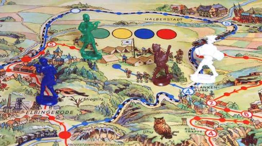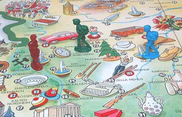 | "Mit dem Auto durch die DDR", ein Würfel-Brettspiel des "Freier Deutscher Gewerkschaftsbund", dem Dachverband der DDR-Gewerkschaften. |