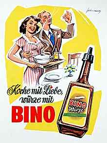 Letztere wurde übrigens zusammengebraut im VEB Elektrochemisches Kombinat Bitterfeld (Bino = Bitterfeld Nord) und ist Resultat eines im Rahmen des „neuen Kurses“ initiierten Konsumgüterprogramms, in Folge dessen Betriebe zur besseren Versorgung der Bevölkerung auch Massenbedarfsartikel herstellten, die bisweilen gar nichts mit den von diesen üblicherweise produzierten Erzeugnissen zu tun hatten (Quelle: Das große Lexikon der DDR-Werbung).