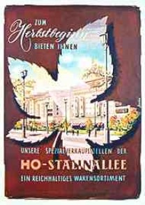 Zur Mitte der 50er hin kommt Farbe in die Zeitschriftenwerbung. Spielte sich bis dahin technisch bedingt noch fast alles in Schwarzweiß ab, besteht nun die Möglichkeit, zumindest auf den farbigen Umschlagseiten von Publikationen wie „Neues Leben“ oder auch dem 1954 erstmals erscheinenden „Das Magazin“ Anzeigen in Farbe abzudrucken. Insbesondere im „Magazin“ wird von dieser Möglichkeit rege Gebrauch gemacht und so sind dort in der Folge neben viel durchschnittlichem auch einige grafisch ausgesprochen reizvolle Werbeserien wie zum Beispiel für das HO (=Handelsorganisation) Warenhaus an der Stalinallee