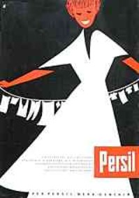 Noch zwei Kuriositäten am Rande: Da das in der „Ostzone“ gelegene Genthiner Werk des Waschmittelherstellers Henkel durch die Sowjets verstaatlicht wurde (VEB Persil-Werk), gab es bis zur Mitte der 50er in der DDR auch Persil zu kaufen. Dann klagte Henkel, und der Name musste aufgegeben werden. Übrig geblieben ist immerhin eine durchaus reizvolle Werbung, die einmal eine ganz andere, moderne Auffassung der legendären „weißen Frau“ zeigt.