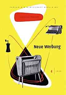 | |  | |  | Neue Werbung - "Zeitschrift für Theorie und Praxis in der Werbung" – Titelthema: "Industrielle Formgebung – Form und Zweck in vollen Einklang bringen..."