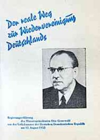 | |  | | | | | "Der reale Weg zur Wiedervereinigung Deutschlands" - "Regierungserklärung des Ministerpräsidenten Otto Grothewohl vor der Volkskammer der Deutschen Demokkratischen Republik" | | |
