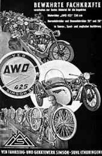 | | VEB Fahrzeug- und Gerätewerk Simson Suhl - "Bewährte Fachkräfte verarbeiten nur bestes Material für die begehrten Motorräder ""AWO 425" 250ccm"
