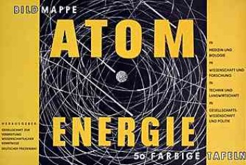 Bildmappe "Atomenergie" 50 farbige Tafeln - Themen z.B.: "Hiroshima und Nagasaki klagen an", "Deutschland darf nicht zur Atomwüste werden", "Gegen den Atomkrieg - gegen die Pariser Verträge", "Kriegshysterie und ein "Bomben"-Geschäft", "Deutschland muß ein Land des Friedens werden", "Wir leben schon im Atomzeitalter", "Wie arbeitet ein Atomkraftwerk?", "Brot für hundert Milliarden Menschen", "Atomkraft – Energie der Zukunft"