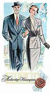 | |  | |  | "Neben den Standardfarben, braun-meliert und grau, die von jeher mit "Pfeffer und Salz" bezeichnet werden, trägt man für Frühjahr und Sommer 1953... | | auch Fil á Fil's in feinen Modefarben, deren Skala von zarten Pastelltönen in silbergrau, hellblau, beige und "Sonnenbrand" -