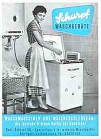 | | | |  | Scharpf Waschgeräte - "Waschmaschinen und Wäscheschleudern - die fortschrittlichen Helfer der Hausfrau", Anzeige | |