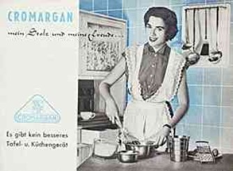 | |  | "Cromargan mein Stolz und meine Freude", Prospekt, Württemnergische Metallwarenfabrik Geislingen (WMF) | | Württembergische Metallwarenfabrik Geislingen (Steige) - "WMF - Das Besteck unserer Zeit von Professor Wagenfeld" |