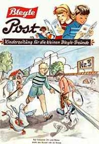 | |  | Der kleine Tierfreund - Jahreskalender 1953 | | Bleyle Post - "Kinderzeitung für die kleinen Bleyle-Freunde" - Titel: "Auf bekannte Art und Weise dreht der Kreisel sich im Kreise" - Inhalt z.B.: Bildergeschichte "Die Abenteuer des Grafen Lilienthal und seines Negerdieners Pit" (schätzungsweise um 1953) | | "Der Wanderklaus 1953" - "Ein Jahrbuch für unsere Jugend zur Pflege der Heimatliebe und der Freude an der Natur, der Liebe zu Pflanze und Tier bei frohem Wandern und Weilen." |