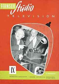 | | "Fernseh Studio Television" - "Internationale Monatsschrift", 1.Jahrgang Heft 1, Themen z.B.: "Fernsehstart in Westdeutschland", "Zauberei mit Punkt und Zeile", "Dramaturgie des Fernsehprogramms", "Der Fernsehempfänger - sein Aussehen und seine Funktion", "Bildgestaltung durch Farbe und Licht", "Industrie und Fernsehen", "Was erwartet der Radiohändler vom Fernsehen?", "Kirche und Fernsehen" |