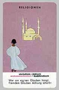 | | Kleine Menschen - Kleine Bürger - "Religionen: christlich - jüdisch - mohammedanisch - buddhistisch" - "Wer am eig'nen Glagen hängt, Fremdem Glauben Achtung schenkt." |