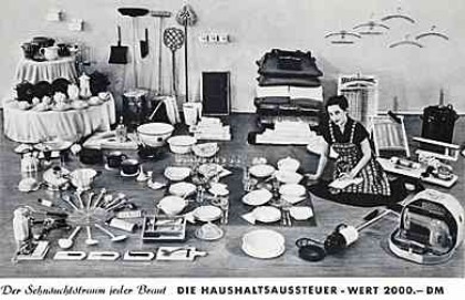 | "Ist das Haus auch noch so klein, sauber muß es trotzdem sein", Werbung für VORWERK-Staubsauger | | "Das "Deutsche Wunder"" . "Deutschland 1945 - 1953" - "Der große Bildbericht über dramatische Jahre" | | Stadt und Land - "Ein heimatkundliches Lehr- und Arbeitsbuch für das 4. Schuljahr" |