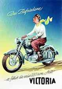 | |  | | | "Der Zufriedene - er fährt die neue 250 ccm Aero von VICTORIA", Prospekt | | "Frohe Fahrt mit der neuen Victoria KR 26", Prospekt |
