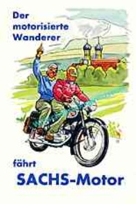 | | "Der motorisierte Wanderer fährt SACHS-Motor" | | "Von Jugendherberge zu Jugendherberge mit Torpedo Freilauf und F&S Kettenschaltung"