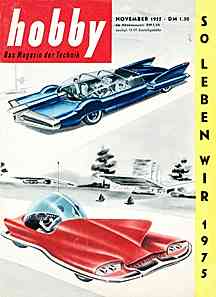| Zukunftsvision (oben) und Realität (oben rechts): Zeitschrift hobby aus dem Jahr 1955: Titel: "So leben wir 1975"