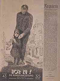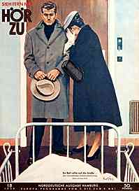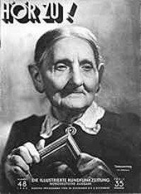 Von nicht zu unterschätzender Bedeutung für den großen Erfolg von HÖR ZU! ist sicherlich auch die Gestaltung der Titelbilder. Sind dort in den Anfangsjahren noch überwiegend gezeichnete oder fotografierte Portraits von Radiokünstlern oder Kinostars zu finden, müssen sich diese nach der Umgestaltung zur familientauglichen Illustrierten den begehrten Platz zunehmend mit Fotos von niedlichen Tieren oder niedlichen Kindern oder auch einer Kombination aus beidem teilen. Ausnahmen bestätigen jedoch die Regel und so stößt der Betrachter ab und an auf Bilder, die ihn unwillkürlich inne halten lassen und aus heutiger Sicht der Dinge wohl gegen so ziemlich jede Regel einer verkaufsträchtigen Titelblattgestaltung verstießen. Eines der am nachhaltigsten in Erinnerung bleibenden Beispiele ist sicherlich das eindrucksvolle Bildnis einer Greisin in Trauerkleidung, die zum Totensonntag des Jahres 1950 eine Goldgerahmte Fotografie ihres verstorbenen Mannes in den Händen hält.
