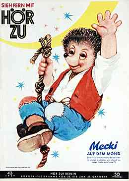 Auch die Einführung des „Mecki“, benannt nach dem Spitznamen eines Redakteurs namens Mecklenburg, geht auf den Chefredakteur zurück. „Als wir ihn in einem stummen Schulfilm der Gebrüder Diehl für die Zeitung entdeckten und ihm seinen Namen gaben – es war das Werk von fünf glücklichen Minuten – da schrieben wir schon vorausahnend: „Das ist Mecki! Äußerlich und innerlich gleichermaßen gutmütig, witzig und vielleicht stachelig. Sie werden ihn von jetzt an in jeder Nummer der HÖR ZU! sehen und – wahrscheinlich sogar suchen.“ Sollte sich das „Redaktionsmaskottchen“ ab Oktober 1949 ursprünglich hin und wieder über etwaige Missstände im Radio mokieren, erfreute sich der Igel jedoch bald solch großer Popularität, dass seine Präsenz im Heft ständig ausgebaut wurde: „Mecki ist der Liebling von Millionen geworden. Er hat längst sein eigenes Sekretariat und seine eigenen Briefbogen.“ Der Igel avanciert zur Hauptfigur einer gezeichneten Fortsetzungs-Bildergeschichte und wird zum ersten deutschen Merchandising-Artikel der Nachkriegszeit. Mecki-Figuren, Ansichtskarten und Comics verkaufen sich in großen Stückzahlen, die Bundesbahn stellt ihn in den Mittelpunkt einer Werbekampagne und die im Rahmen eines Wettbewerbs kreierte Mecki-Frisur steht auch heute noch für einen Haarschnitt im Igel-Look. Getreu dem altbekannten Motto „Für jeden etwas“ besitz die Figur ein Breitwandspektrum unterschiedlichster Eigenschaften und hat derart Lesern jeden Alters Identifikationspunkte zu bieten. Deutlich wird dies innerhalb eines Berichts, in dem eine Auswahl der von Lesern an „Herrn Mecki“ geschickten „kleinen Liebesgaben“ präsentiert wird: Während Kinder ihrem niedlichen Mecki selbst gestrickte Kleidungsstücke, Puppenmöbel und Süßigkeiten senden, erfreuen die Erwachsenen ihren selbstbewussten, sich in jeder Situation zurechtfindenden und auch einem „guten Tropfen“ durchaus nicht abgeneigten Mecki beispielsweise mit einem Fläschchen „feiner Magenlikör“.