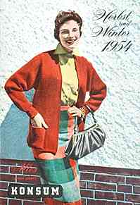 | |  | |  | KONSUM - Katalog "Herbst und Winter 1954" | | Hettlage - "Das große bekannte Spezialgeschäft für Damen- Herren- und Kinderkleidung" - "Modeträume werden Wirklichkeit... Interessante Anregungen für preiswertes und gutes Kleiden!"