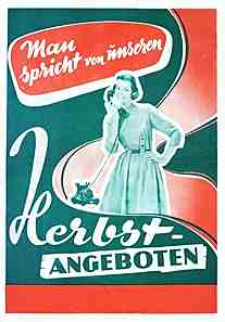 | |  | | | "Geschenke die Freude bringen", Fern-Kauf-Nord GmbH Celle, Katalog (schätzungsweise 1954) | | Vortisch - "Das Familien-Kaufhaus in Lörrach" - "Mit Sorgfalt gewählt" - "Praktisch denken - praktisch schenken!", Prospekt (schätzungsweise um 1954)