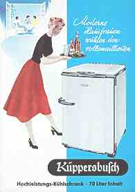 | |  | |  | Prospekt "Moderne Hausfrauen wählen den vollemaillierten Küppersbusch Hochleistungs-Kühlschrank" (ca.1954)