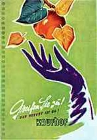 | |  | |  | Kaufhof - "...und dann gute Reise!", Plakatmotiv | | Kaufhof - "Greifen Sie zu! Der Herbst ist da!", Plakatmotiv | | Kaufhof - "Wir bringen viel Freude zum schönsten Fest!", Plakatmotiv |