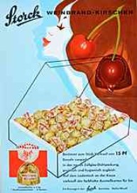 | | Storck WEINBRAND-KIRSCHEN - "Bestimmt zum Stück-Verkauf für 15 Pf. Einzeln verpackt in der neuen Zellglas-Dichtpackung, praktisch und hygienisch zugleich. Auf dem Ladentisch an der Kasse verkauft der farbenfrohe Ausstellkarton für Sie." | | "Der Einkaufsberater für Sie", Katalog |