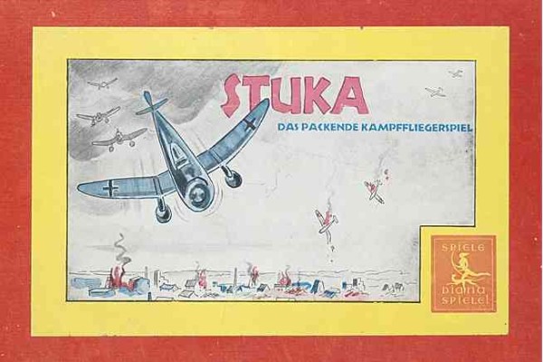 | "Stuka - Das packende Kampffliegerspiel", Diana Spiele, 1940. "Kriegerische" Spiele - oft in Form von "Strategiespielen" - wurden in den Jahren des Zweiten Weltkriegs zuhauf auf den Markt geworfen, das obige sei an dieser Stelle als Beispiel dafür zu sehen. Dies geschieht aus dokumentarischen Gründen, um diese dunkle Epoche deutscher Geschichte nicht auszusparen. Ich möchte jedoch nicht versäumen, darauf hinzuweisen, dass ich mich entschieden von den in der Regel Gewalt verherrlichenden Inhalten solcher Spiele distanziere! |