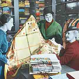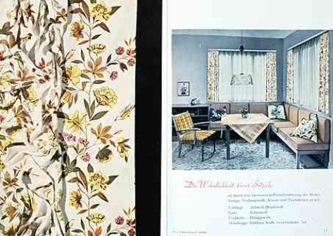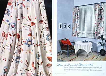 "Dieser reizvoll gemusterte Dekorationsstoff verleiht dem Raum ein besonders geschmackvolles Gepräge."