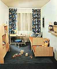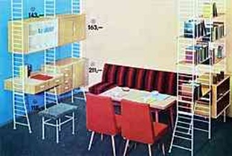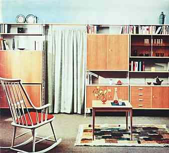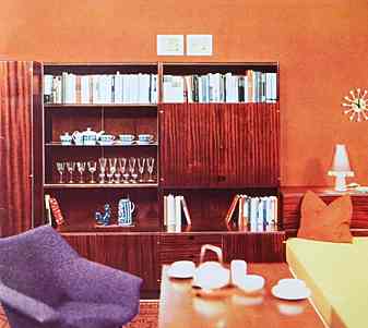 | | "Raumteiler gestalten Ihre Wohnung individuell. Sehr moderne und praktische Gruppierungen, passend für jeden Raum." (1965)