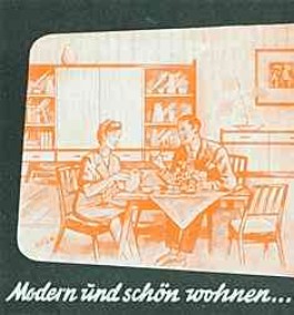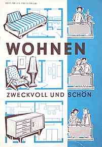 | |  | | | | | "Modern und schön wohnen, früher das Vorrecht einer begüterten Oberschicht, heute eine Selbstverständlichkeit für unsere Werktätigen!", Faltblatt (1960)