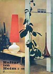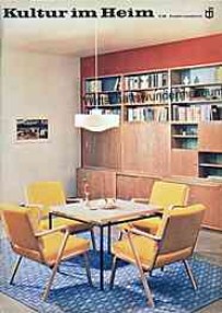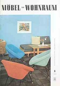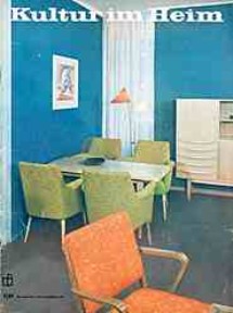 | | "Kultur im Heim", Zeitschrift - Titelbild: "Ein Sessel aus dem Entwurfsbüro Waldheim mit schwungvoller Linienführung und freundlichen Farben in einem Zimmer der "Leipzig"-Serie" (1965)